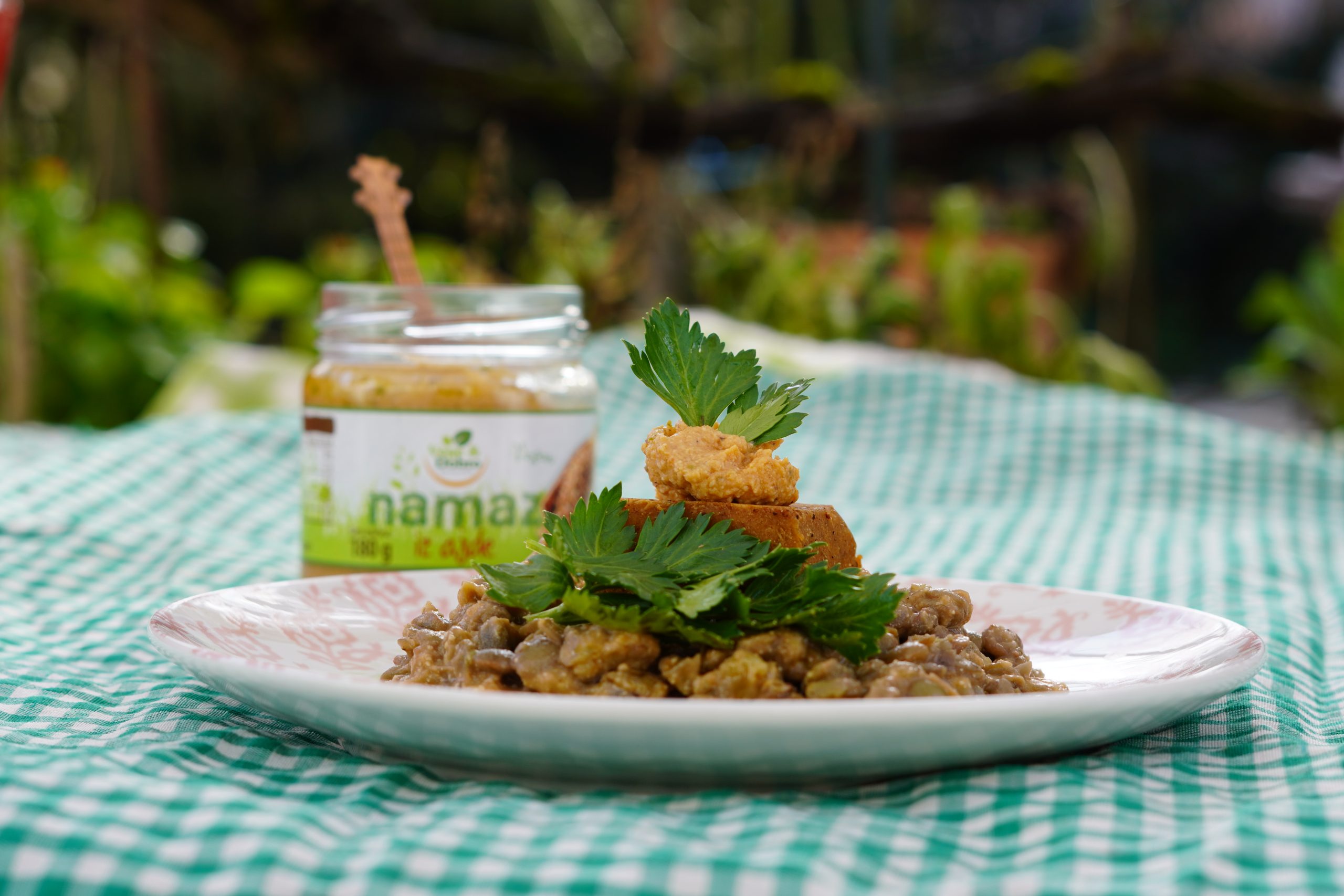 Zelena leća, vege kobasica i namaz od slanutka
